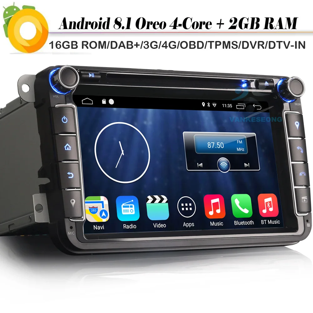 8" Android 8.1 Autoradio Car stereo DAB+ WiFi 4G DVD Radio OBD BT Car GPS Navigation Player for VW